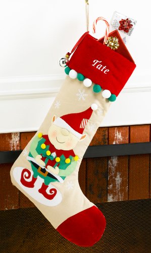 - Stocking made of corduroy with a red velvet cuff and toe (hanging loop is corduroy)